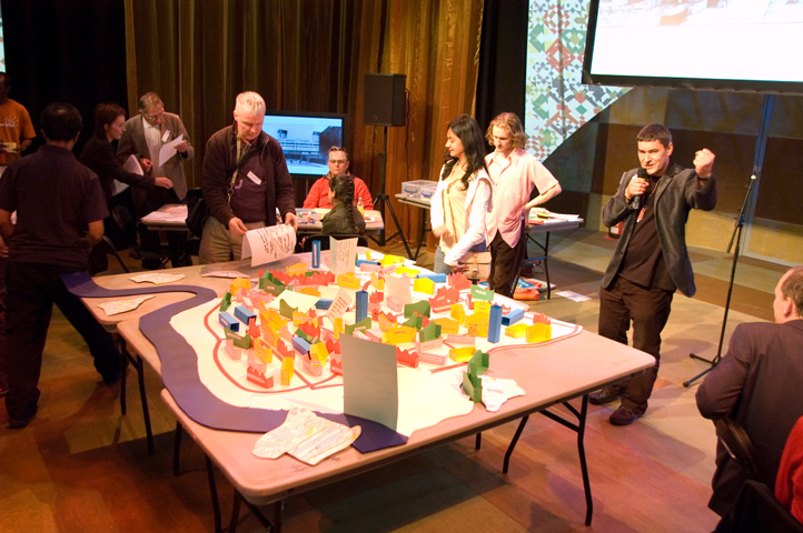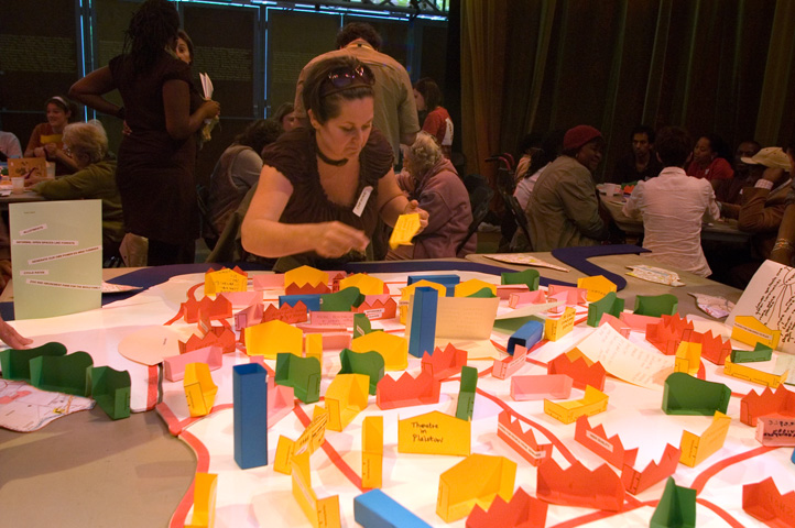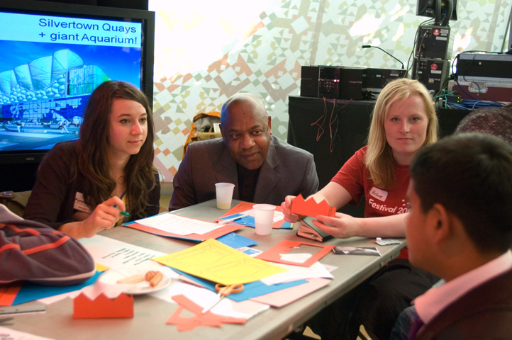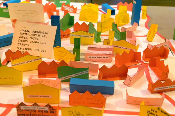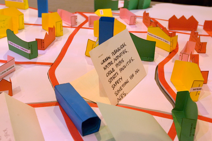 with slogans and statements around the sustainable communities theme. These models were placed on a giant map of Newham